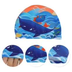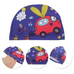 Unique Bargains Kid’s Polyester Cartoon Pattern Swim Cap Blue Red 1 Pc