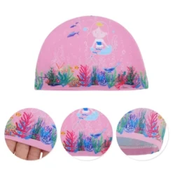Unique Bargains Kid’s Polyester Cartoon Monster Swim Cap Blue Purple Red 1 Pc