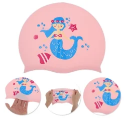 Unique Bargains Kid’s Silicone Mermaid Pattern Swim Cap Rose Pink 1 Pc