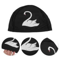 Unique Bargains Knitted PU Elastic Swans Pattern Swim Cap 1 Pc