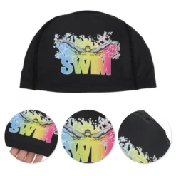 Unique Bargains Knitted PU Elastic Letter Pattern Swim Cap 1 Pc