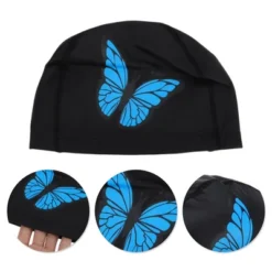 Unique Bargains Knitted PU Elastic Butterfly Pattern Swim Cap 1 Pc