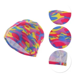 Unique Bargains Polyester Camouflage Pattern Swim Cap 5.91″x9.25″ Red Blue Yellow 1 Pc