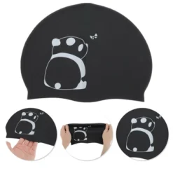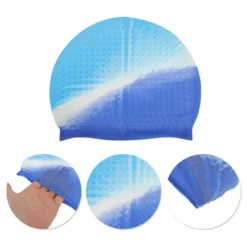 Unique Bargains Silicone Breaststroke Pattern Waterproof Swim Cap White Black Blue 1 Pc
