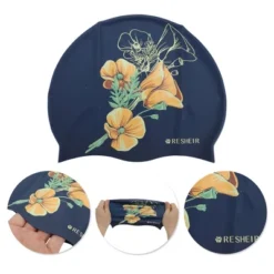 Unique Bargains Silicone Waterproof Floral Pattern Swim Cap 1 Pc
