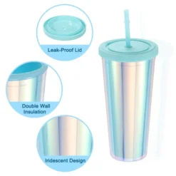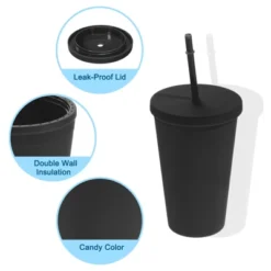 Unique Bargains Acrylic Insulated Double Wall Tumbler With Lid And Straw
