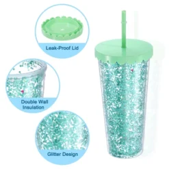 Unique Bargains Acrylic Double Wall Spill-Proof Lid Transparent Sequins Straw Tumbler