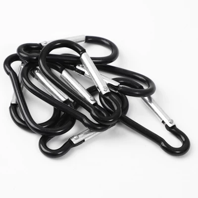 Product Name: Carabiner Hook;Material: Aluminum Alloy;Size (Approx.): 60 x 28 x 5mm/ 2.4″ x 1.1″ x 0.2″(L*W*Max. Dia);Main Color: Black;Weight: 48g;Package Content: 8 x Carabiner Hooks;Descriptions:Spring-loaded gate for fast on/off, calabash shape.Aluminum alloy hook, Screw lock carabiner hooks.It can open and close easily as the spring-loaded gate which makes it easy to attach important items to a belt.Ideal for holding bottle, pouch, small bag or items when traveling, cycling or camping.Note: Not for climbing or equipment.