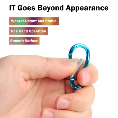 Product Name: Carabiner HookMaterial: Aluminum Main Color: TealSize (Approx): 4 x 2 x 0.4cm / 1.6″ x 0.8″ x 0.16″ (L*W*T)Net Weight: 15gPackage Content: 5 Pcs x Carabiner HookDescriptions:It is easy to be opened and closed.It also can be used as a hanger or hook, you can hook bags with it.Compact and exquisite design, it is convenient to carry when camping, traveling.Note: Not for climbing or equipment.