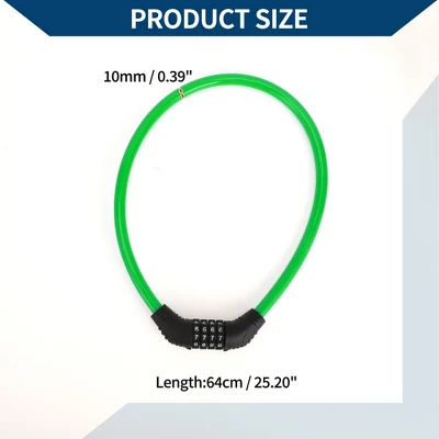 Unique Bargains Bicycle Lock Security Lock Resettable 4 Digit Combination Chain Bike Lock Green