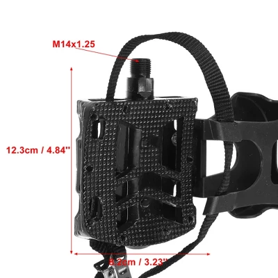 - The bicycle pedal surface has a non-slip design and straps on the top for a good connection to the shoe