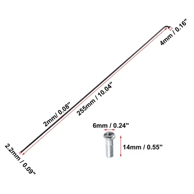 The wheel spoke kit allows you to rebuild your bicycle wheel with enough spokes and nipples. It can not only replace the spokes and nipples but also upgrade them for race durability. Please allow a 3-5mm error! Specification: Color: Black; Material: Metal; Elbow Head Dia: 4mm / 0.16″; Spokes Thread Dia: 2.2mm / 0.09″; Spoke Shaft Diameter: 2mm/ 0.08”; Nipples Size: 14 x 6mm / 0.55″ x 0.24″ (L*Max.D). Package Includes: 36 x Wheel Plated Spoke; 36 x Nipples. Installation: According to the arrangement of your wheel, you can take a picture before installation. When installing, the two adjacent spokes on the wheel drum are mounted in the first and third holes in the same direction on the rim (two spokes spaced one hole).