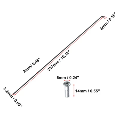 The wheel spoke kit includes enough spokes and nipples to rebuild your bicycle wheel. Not only replace the spokes and nipples but upgrade them for race durability. The wheel uses a gradual continuous hammering technique that improves the oscillating load capacity. Spokes have good toughness and anti-impact resistance, reducing the impact resistance of the wheel. Please allow slight measuring deviation due to manual measurement. Specification: Color: Black; Material: Metal; Elbow Head Dia: 4mm / 0.16″; Spokes Thread Dia: 2.2mm / 0.09″; Spoke Shaft Diameter: 2mm/ 0.08”; Nipples Size: 14 x 6mm / 0.55″ x 0.24″ (L*Max.D). Installation: According to the former arrangement of your wheel, you can take a picture before installation. When installing, the two adjacent spokes on the wheel drum are mounted in the first and third holes in the same direction on the rim (two spokes spaced one hole). Package Includes: 36 x Wheel Plated Spoke; 36 x Nipples.