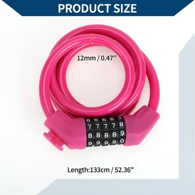 - This durable and robust Bicycle Lock features a 133cm / 52.36″ length made from Zinc Alloy, PVC, ABS and PP
