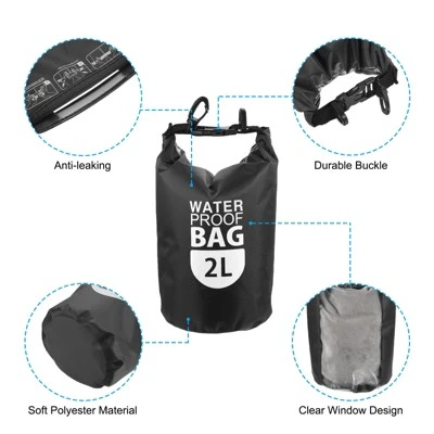 It is fit for storing the essentials such as phones, keys, wallet, clothes, and so on, which is applied to the swimming pool, beach, water park, boating, kayaking, rafting, fishing, canoeing, diving, camping, hiking, travel, etc. Made of sturdy material, which is lightweight, soft, durable, wear-resistant, and easy to secure and carry. Clear window design helps you quickly identify the correct bag and keeps the items in good condition. Before use, perform a waterproof test to check and ensure it doesn’t leak. Please keep the water bag away from sharp-edged objects and do not use it at high temperatures.