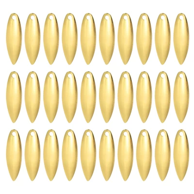 The rotating motion of the blade creates vibrations and flashes in the water, which make it effective at attracting fish and enticing strikes. This makes lure blades highly effective for catching a variety of freshwater and saltwater game fish species. Lure blades are usually thin and curved, this design allows them to spin rapidly when retrieved through the water, creating vibration and flash that mimic the movement of small fish. Lure blades come in a bright color and finish; this variation helps increase visibility and adds extra visual appeal to the lure, enhancing its attractiveness to fish. Attach the lure blade to your fishing lure or spinnerbait. There is a small hole at one end that allows you to connect it to the lure using a split ring, swivel, or clevis. NOTE: Please confirm the size of the lure blade you need before ordering.