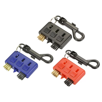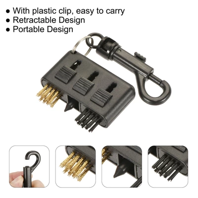 As a common golf bag accessory, the golf brush can clean the grooves of golf clubs, balls, and shoes quickly and efficiently. A necessary cleaning tool for golf players, so everyone can enjoy the game. The brush features a 3 in 1 head design with brass wire bristles for cleaning metal surfaces, polypropylene bristles for wood surfaces, and a spike brush head for cleaning grooves. It is easy to carry with a plastic clip for attaching to the golf bag, and the retractable design allows for convenient storage in your pocket. Please pay attention to the tip and hard bristles to avoid scratching your hands.