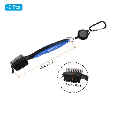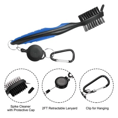 The golf brush is a popular accessory for golf bags, serving as a convenient tool to effectively clean the grooves on golf clubs, balls, and shoes. It is an essential cleaning tool that all golf players require to fully enjoy their game. The brass wire bristles are used for cleaning metal surfaces, while the nylon bristles are used for cleaning wood surfaces. Easy to carry, the brush has a plastic clip for attaching to the golf bag. The Retractable Lanyard is capable of being extended and conveniently attached to a golf club bag. This ensures easy access to this cleaning tool anytime during your golfing session. Notice: Please pay attention to the tip and hard bristles, and do not scratch your hands.