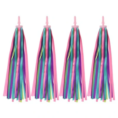 These colorful bike streamers can decorate bicycles, tricycles, scooters, mountain bikes, power bikes, etc. Suitable for various occasions, such as Children’s Day parties, birthday parties, graduation parties, Christmas decorations, weddings, family gatherings, and more. The holiday bicycle tassel ribbon is also a great gift for friends and family. The handlebar ribbon is made of polyester fiber and plastic, with a soft and smooth texture, not easy to break. The base and the ribbon are tightly bonded, not easy to fall off, and allow long-term repeated use. The bright and shiny tassels hanging on the bicycle, fluttering in the wind, will make you stand out at the bicycle festival. Featuring a plastic anchor head design, they easily insert and secure into the handlebar holes of bikes, and the universal compatibility ensures hassle-free installation. Please don’t tear the ribbon too hard.