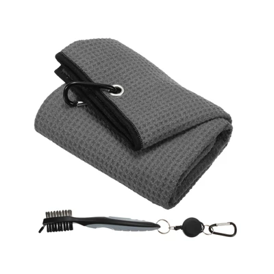 The golf club cleaning kit contains 1 pcs microfiber golf towel and 1 pcs club groove cleaning brush. This microfiber golf towel is suitable for golf courses clubs and other places it can keep clubs balls and hands dry during golf games or training very suitable for golf enthusiasts. The tri-fold golf towel is made of microfiber material which is strong absorbent and easy to clean. The waffle texture design is thick and has no lint and it is durable and wrinkle-resistant. Cleaning brush with club groove cleaner retractable extension cord and clip make it easy and convenient to remove pebbles and dirt from grooves. It comes with a D-shaped hang hook so you can hang it on your backpack or belt to avoid the loss of towels and it is light and portable. There are 3 hanging holes on the top of the towel which can be folded and hung. At the same time, it is convenient to fold up and use and it is not easy to fall apart when wiping. Please note that the size is correct before placing an order.