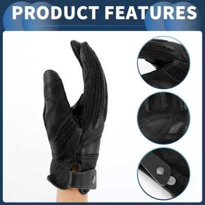 Universal Fit:The Motorcycle Gloves are suitable for outdoor sports, cycling, riding a motorcycle, motocross racing, dirt bike, ATV UTV.About This Product:Glove Type: Motorcycle Gloves;Age Range: Adult;Material: Sheep Leather;Product Features:Made with fine and soft, breathable sheep leather that feels soft and gentle on your hands.Breathable and stretchy, flexible and comfortable to wear.Reinforced palm and thumb root area prevents slippage and increases durability, making it durable and long-lasting.Great for motorcycles, bicycles, and outdoor activitiesEasy to Install:Conveniently designed gloves for quick and hassle-free wear.Package Item:1 Pair Motorcycle Gloves.