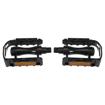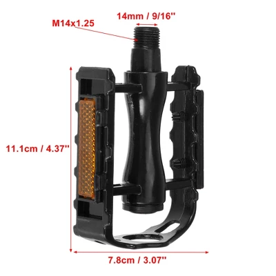 Features: Suitable pedal size offer long ride comfort and pedaling efficiency. Anti-slip cleats design, strong grasps, no longer skid. L for left pedal, R for right pedal. Standard 9/16” sturdy Chromoly steel axle bearing fits for most bikes. Suitable for commuting, recreational riding, BMX, cruisers bicycle, road bicycles, MTB bicycle, mountain bicycles, junior bicycle, city bicycle, etc. Specifications: Color: Black; Material: Aluminum Alloy; Placement on Vehicle: Left, Right; Spindle Thread Diameter: M14x1.25; Spindle Diameter: 14mm / 9/16”; Size: 11.1×7.8x3cm / 4.37”x3.07”x1.18”(L*W*H); Package Includes: 1 Pair Bike Non Slip Pedal.