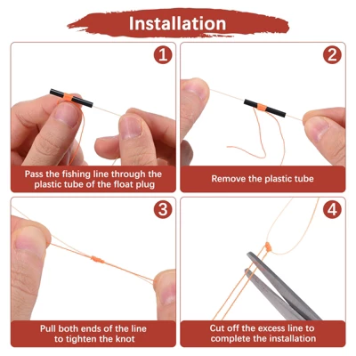 The float bobber stopper is made of nylon rope, which has high tensile and breaking strength, good wear resistance, and is easy to operate and knot, making it easier to grab the main fishing line than other float stops. The Float stopper is perfect for fishing in lakes, ponds, oceans, rivers and streams. It can be installed on the fishing line to prevent accessories on the fishing line from sliding. It can also be used as a marker for water depth, making your fishing activities more convenient. The knotted rope sliding float stopper can hold the fishing line more firmly without damaging the fishing line. It comes with plastic beads to prevent the float from sliding up and down. Suitable for most floats. Pass the fishing line through the plastic tube of the float stopper, remove the plastic tube, and then pull the two ends of the line to tighten the knot, and then cut off the excess line end to complete the installation.