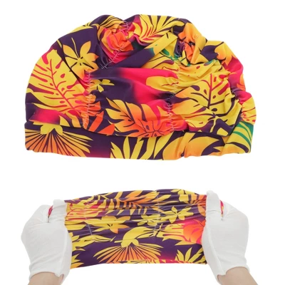Unique Bargains Nylon Leaves Pattern Swimming Cap Orange Yellow 1 Pc