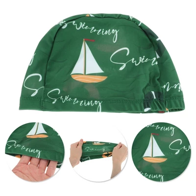 Unique Bargains Nylon Swimming Ring Pattern Swim Cap Green 1 Pc