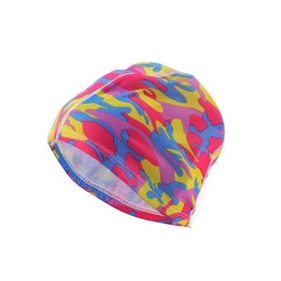 Unique Bargains Polyester Camouflage Pattern Swim Cap 5.91″x9.25″ Red Blue Yellow 1 Pc