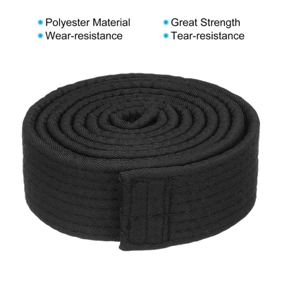 Taekwondo uses a belt system to denote different ranks and levels of proficiency. The colored belts signify the progress of practitioners as they advance through the ranks. The belt is made from polyester material providing great strength and resistance to wear and tear, ensuring that the belt can withstand rigorous training sessions and last for an extended period. The belt is easy to clean and maintain, allowing practitioners to keep their belts in good condition, free from dirt or sweat accumulated during training. Colored ranking belts serve as a visible form of recognition and motivation for practitioners. They provide a sense of accomplishment and encourage further dedication and improvement in their training.