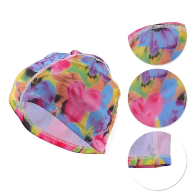 Unique Bargains Polyester Flower Pattern Swim Cap 5.91"x9.25" Pink Blue Yellow 1 Pc -Outdoor Sports Series GUEST 5ae4d5dc 5035 407c 816c 374134623c97