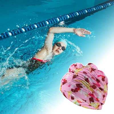 Unique Bargains Polyester Ice Cream Pattern Swim Cap 5.91"x9.25" Pink Yellow 1 Pc -Outdoor Sports Series GUEST 4d00a61c 23ea 4189 8e4a 2f873368a94c