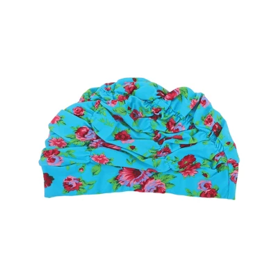 Unique Bargains Polyester Peony Flower Pattern Swim Cap 5.91"x9.25" Lake Blue Red 1 Pc