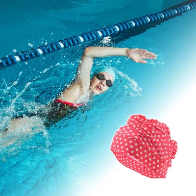 Unique Bargains Polyester Polka Dots Pattern Swim Cap 5.91"x9.25" Red White 1 Pc -Outdoor Sports Series GUEST 81e26868 864b 4936 a34b 9d4dcfc5eb21