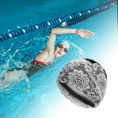 Swim cap is made of good quality pu and lace material, which is tear-resistant, durable, odorless. Excellent elasticity makes it stretch easily. ️Swim cap is shaped once according to the shape of a human skull. The material is designed not to snag or pull hair. Swim cap protect your hair and ear insure a safe and happy swimming experience.