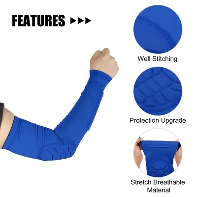 Features:Support: Item Function: Support: 1. Soft Fabric: Stretch and breathable fabric, soft and comfortable. 2. Elastane material reduces irritation, sweat, and odor. 3. It dries quickly and keeps you cool and comfortable. 4. The sleeves are comfortable and can be worn every day. 5. Non-slip Silicone: Strong sewing, durable, and not easy to take off the thread. Stable and non-slip, not slippery or shaking, wear firmly. 6. Free movement is not easy to fall off. Package List: 1 Pair Arm Elbow Compression Sleeves. 7. Please Note: If any discomforts happen, please take them off. 8. Strong Protect: Using foam material, double motion protection, protect the upper arm and lower arm, safe and reliable. 9. Due to the material problem, the arm sleeve is not machine washable, it will mar the foam pad inside. It is recommended to hand wash and dry naturally. 10. Product Name: Arm Elbow Compression Sleeves; Material: Elastane; Quantity: 1 Pair.