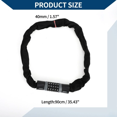 - This durable and robust Bicycle Lock features a 90cm / 35.43″ length made from Carbon Steel, ABS and Nylon