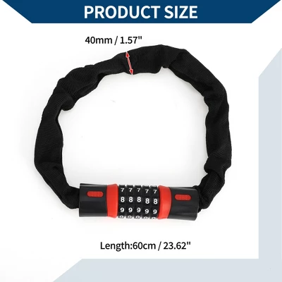 Unique Bargains Security Chain Combination Padlock Resettable 5 Digit Bike Lock Black Red 23.62″