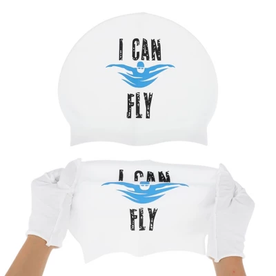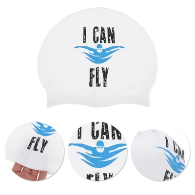 Unique Bargains Silicone Breaststroke Pattern Waterproof Swim Cap White Black Blue 1 Pc