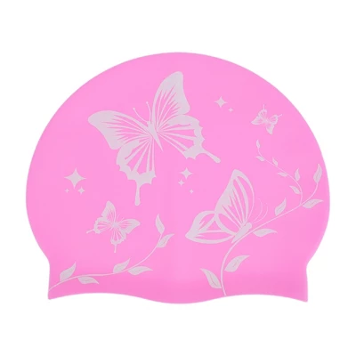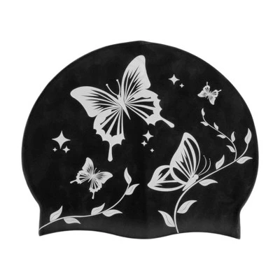 Unique Bargains Silicone Butterfly Vine Leaves Pattern Waterproof Swim Cap 1 Pc