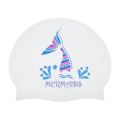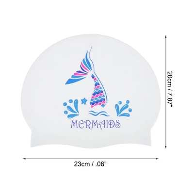 Unique Bargains Silicone Mermaid Tail Pattern Waterproof Swim Cap White Blue 1 Pc