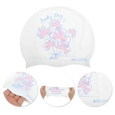 Unique Bargains Silicone Waterproof Lucky Clovers Swim Cap Blue Light Pink 1 Pc -Outdoor Sports Series GUEST df3dc3da 5a8c 41d0 9dc8 e47baac5687f