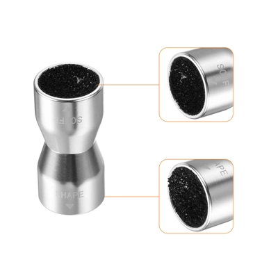 The billiards cue repair tool is used to loosen hard club heads, increase the surface roughness of the cue, make the cue hit the ball better, and improve your hit rate and the probability of bagging the ball.SpecificationColor: Silver ToneMaterial: Aluminum AlloyLength: 45 mm / 1.8 inchDiameter: 22 mm / 0.87 inchPacking List: 1 x Snooker Pool Cue Tip ToolAdvantage1. The billiard cue tip tool is made of aluminum alloy, which is sturdy, rust-proof, durable, compact and portable.2. The pool cue tip shaper has a curved dome design, which fits better with the tip of the cue.InstructionWhen the tip of the cue becomes too smooth to touch the pool chalk, use the needle to loosen the tip and use another side to scuff it so that it absorbs the powder better.NOTE: The cue tip shaper tool is small and sharp, please keep it away from children to avoid scratches.