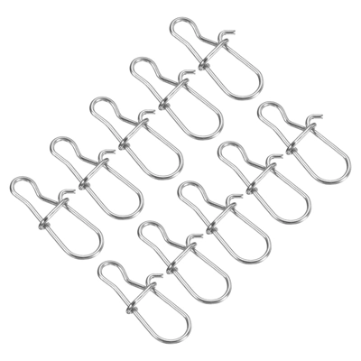 The snap swivel is an essential tool for any angler, designed to effectively connect the fishing line from your rod to the lure. Its primary function is to prevent tangling during retrieval, ensuring a smooth fishing experience. The quick lock and open design allow for easy changes of lures, making it convenient for different fishing conditions. Crafted from durable nickel-plated stainless steel, this snap swivel boasts a coating that resists rust, ensuring longevity even in saltwater environments. To use, simply tie the fishing line to the ring of the snap swivel and attach your chosen lure to the snap. This product is perfect for both freshwater and saltwater fishing, and it is important to confirm the size and strength needed before placing your order to ensure optimal performance on your fishing trips.