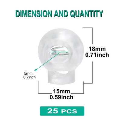 Description: Made of plastic, durable and lightweight. Great for use on sweatpants or hoodies to keep from losing the drawstring and to tighten the drawstring as well. Widely used for lanyards, drawstrings, luggage, clothing, backpacks, sportswear, shoelaces, bags, jackets, hats, storage bags, hammocks, tents, outdoor, gym products, and other uses. With a spring-loaded design, it will help to stop the cord or drawstrings from slipping. A spring-loaded cord lock closes bags, hoods, hats, etc. keeping your cord tight and secure, without tying. Cord locks can be used in the dryer. Notes: 1. Variability of 1-2mm is possible due to the measurement process. 2. Due to the shooting and screen setting difference, the item’s color may be slightly different from the pictures.