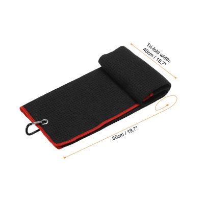 Unique Bargains Super Absorbent Waffle Pattern Tri-Fold Golf Towels With D Clips 20″x16″