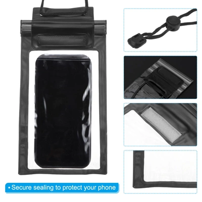 This transparent PVC bag features a smooth surface that allows direct contact with the screen, allowing you to send and check messages without removing your phone. It features a thick, waterproof seal and comes with a durable lanyard for easy portability. This versatile, vacation-essential waterproof phone bag can accommodate most phones and is suitable for swimming, beaches, surfing, fishing, swimming, sailing, kayaking, snorkeling, rafting, and other outdoor water activities. Instructions: 1. Place your phone in the bag; 2. Press the self-sealing flap to seal; 3. Fold the seal; 4. Attach with the self-adhesive closure. Note: Before each use, test the bag’s waterproofness with a tissue.