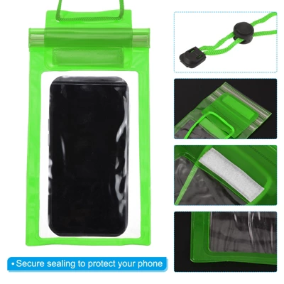 This transparent PVC bag features a smooth surface that allows direct contact with the screen, allowing you to send and check messages without removing your phone. It features a thick, waterproof seal and comes with a durable lanyard for easy portability. This versatile, vacation-essential waterproof phone bag can accommodate most phones and is suitable for swimming, beaches, surfing, fishing, swimming, sailing, kayaking, snorkeling, rafting, and other outdoor water activities. Instructions: 1. Place your phone in the bag; 2. Press the self-sealing flap to seal; 3. Fold the seal; 4. Attach with the self-adhesive closure. Note: Before each use, test the bag’s waterproofness with a tissue.